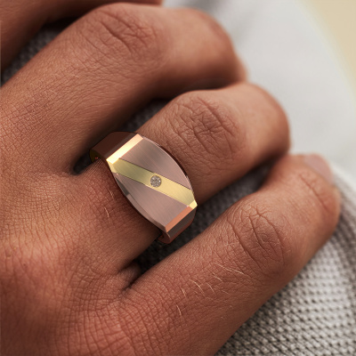 Dress to impress with this wide Joe 3 men's ring, because with the right ring you make a strong personal statement. This Joe 3 flat men's ring is shown in 14 Carat rose gold. If this doesn't suit your style, feel free to customize the precious metal to your liking. After all, you want a men's ring that matches your style. A ring that truly suits you. One saying: This is who I am!The best part of this flat men's ring is that you can customize it to your own liking. Your style, your choice, your men's ring. On top of that, your modern rose gold men's ring will be made by hand with eco-friendly materials! Please feel free to easily customize the ring, using our online tool. Of course, you can always contact us. We will gladly help you compiling your modern men's ring. Is there a design you like, but you would like to customize it with a gemstone we do not offer on our website, then please contact us. We're happy to tell you about the possibilities.Our talented designers add new designs to our online collection daily. Together they create a diverse collection of the finest jewellery. If you prefer to make a ring according your own design, please feel free to request a quote. We will make you an amazing offer, based on quality and price.By using our modern techniques, we can design and customize the finest quality jewels with the utmost care for you. Our rings are always priced 30 percent lower than other jewellers. We make rings to order, so we don't have to maintain a large stock. If you have a certain budget, we are more than happy to advice you accordingly.To make it easier for you, we offer a 30 day return policy. Check our terms and conditions.