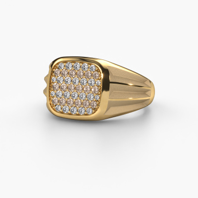 Are you looking for a exclusive gold pinky ring that is slightly different? Then our square gold brown diamond set Robbert pinky ring is the perfect ring for you! This ring, as shown here, is made of gold but feel free to customize to your liking. Show them what you are all about with this gold brown diamonds Robbert pinky ring, a ring for ambitious men. How do you like this exclusive gold men's ring? Simply customize this Robbert men's ring, using our online tool. Subsequently, your personal elegant Robbert men's ring will be made by hand by our goldsmiths. Precious metals and gemstones can be customized to your liking. Do you have specific preferences which are unavailable in our online tool? Please feel free to contact us. We will customize your personal exclusive men's ring to your liking.