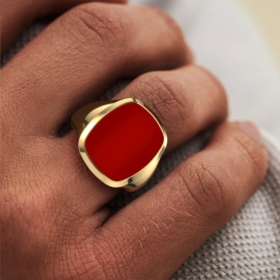 The flat Benjamin 4 signet ring with rectangle antique carnelian stone top, as shown above, is filled with tradition. Customary, the signet ring was passed down from father to son. Start your own tradition with this flat gold signet ring. We are also more than happy to engrave your ring with a monogram or family crest. Please check our database for further inquiries and options. You can find the departments of our education centre at the bottom of this page. Start a new tradition with the modern gold Benjamin 4 signet ring. How do you like this modern gold signet ring? Simply customize this Benjamin 4 signet ring, using our online tool. Subsequently, your personal royal Benjamin 4 signet ring will be made by hand by our goldsmiths. Precious metals and gemstones can be customized to your liking. Do you have specific preferences which are unavailable in our online tool? Please feel free to contact us. We will customize your personal modern signet ring to your liking.Our team of talented, passionate designers add new ring designs to our online collection daily. Our objective in doing so, is to be able to offer you a wide variety of jewels. Please feel free to request a quote if you have specific wishes for your ring. We guarantee to make you an offer you can't refuse.After receiving your order, our goldsmiths will passionately start the creative process of making your ring in our own studio. Because we don't have a big stockpile, these costs will not be passed on to you. Our pricing is proof of that! We offer top quality jewels at lowest price, guaranteed.To make it easier for you, we offer a 30 day return policy. Check our terms and conditions.