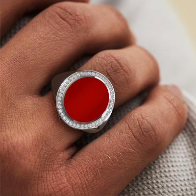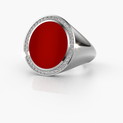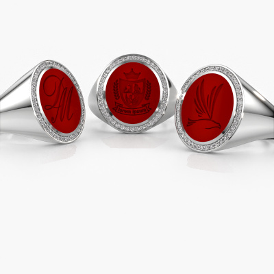 The oval Adam 5 signet ring with oval shape carnelian stone top, as shown above, is filled with tradition. Customary, the signet ring was passed down from father to son. Start your own tradition with this oval white gold signet ring. We are also more than happy to engrave your ring with a monogram or family crest. Please check our database for further inquiries and options. You can find the departments of our education centre at the bottom of this page. Start a new tradition with the exclusive white gold Adam 5 signet ring. The diamonds Adam 5 signet ring, as shown here, can be customized to your liking. Our online tool offers many different options but please feel free to contact us if you want changes made to your Adam 5 signet ring, which are unavailable in our online tool.Our talented designers add new designs to our online collection daily. Together they create a diverse collection of the finest jewellery. If you prefer to make a ring according your own design, please feel free to request a quote. We will make you an amazing offer, based on quality and price.After receiving your order, our goldsmiths will start the creative process of making your Adam 5 ring. We don't keep stock. This is advantageous because these costs will not be passed on to you. Therefore, we can offer jewellery at exceptionally low prices.To make it easier for you, we offer a 30 day return policy. Check our terms and conditions.