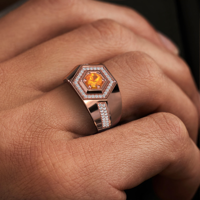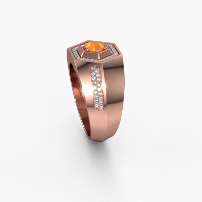 Are you looking for a exclusive rose gold men's ring that is slightly different? Then our wide rose gold citrin set Sjoerd men's ring is the perfect ring for you! This ring, as shown here, is made of rose gold but feel free to customize to your liking. Show them what you are all about with this rose gold citrin Sjoerd men's ring, a ring for ambitious men. As soon as you finished designing your Sjoerd men's ring with our online tool, our goldsmiths will start their creative process of making your ring. This will be done with passion and care, according ancient crafting. On top of that, our jewels are made of eco-friendly materials. Simply customize online with our online tool, if you want any changes made. If you want specific changes made to your Sjoerd men's ring, that are unavailable in our online tool, please feel free to contact our expert designers.Our team of talented, passionate designers add new ring designs to our online collection daily. Our objective in doing so, is to be able to offer you a wide variety of jewels. Please feel free to request a quote if you have specific wishes for your ring. We guarantee to make you an offer you can't refuse.By using our modern techniques, we can design and customize the finest quality jewels with the utmost care for you. Our rings are always priced 30 percent lower than other jewellers. We make rings to order, so we don't have to maintain a large stock. If you have a certain budget, we are more than happy to advice you accordingly.To make it easier for you, we offer a 30 day return policy. Check our terms and conditions.