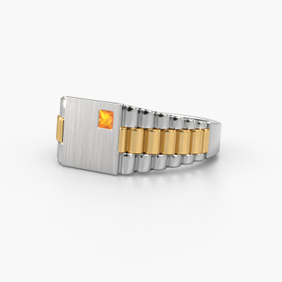Everyone knows the design of this well-known watch brand. With two colours of white gold links, this solid 14 Carat white gold Pelle men's ring, is perfectly suited for trendy, successful men. A man who wants to dress to impress with a striking men's ring with 3 mm citrin. Show them what you are made of!The best part of this royal men's ring is that you can customize it to your own liking. Your style, your choice, your men's ring. On top of that, your luxury white gold men's ring will be made by hand with eco-friendly materials! Please feel free to easily customize the ring, using our online tool. Of course, you can always contact us. We will gladly help you compiling your luxury men's ring. Is there a design you like, but you would like to customize it with a gemstone we do not offer on our website, then please contact us. We're happy to tell you about the possibilities.Our team of talented, passionate designers add new ring designs to our online collection daily. Our objective in doing so, is to be able to offer you a wide variety of jewels. Please feel free to request a quote if you have specific wishes for your ring. We guarantee to make you an offer you can't refuse.After receiving your order, our goldsmiths will start the creative process of making your Pelle ring. We don't keep stock. This is advantageous because these costs will not be passed on to you. Therefore, we can offer jewellery at exceptionally low prices.To make it easier for you, we offer a 30 day return policy. Check our terms and conditions.