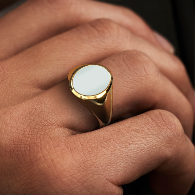 The heavy Herman 2 signet ring with oval shape green sardonyx stone top, as shown above, is filled with tradition. Customary, the signet ring was passed down from father to son. Start your own tradition with this heavy gold signet ring. We are also more than happy to engrave your ring with a monogram or family crest. Please check our database for further inquiries and options. You can find the departments of our education centre at the bottom of this page. Start a new tradition with the classic gold Herman 2 signet ring. Our goldsmiths passionately create your customized signet ring to your liking with the utmost care. The gold signet ring, as shown here, can be customized using our online tool. Feel free to ask our jewel designers for assistance if you want changes made which are unavailable in our online tool. We are happy to answer your questions.Our team of talented, passionate designers add new ring designs to our online collection daily. Our objective in doing so, is to be able to offer you a wide variety of jewels. Please feel free to request a quote if you have specific wishes for your ring. We guarantee to make you an offer you can't refuse.Are you on a budget? Please feel free to contact us, so we can go discuss your options. We offer our rings at guaranteed best price, because we make them to order. You won't find such a price anywhere else!To make it easier for you, we offer a 30 day return policy. Check our terms and conditions.