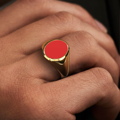The heavy Herman 2 light signet ring with oval shape red enamel stone top, as shown above, is filled with tradition. Customary, the signet ring was passed down from father to son. Start your own tradition with this heavy gold signet ring. We are also more than happy to engrave your ring with a monogram or family crest. Please check our database for further inquiries and options. You can find the departments of our education centre at the bottom of this page. Start a new tradition with the classic gold Herman 2 light signet ring. Our goldsmiths passionately create your customized signet ring to your liking with the utmost care. The gold signet ring, as shown here, can be customized using our online tool. Feel free to ask our jewel designers for assistance if you want changes made which are unavailable in our online tool. We are happy to answer your questions.Our team of talented, passionate designers add new ring designs to our online collection daily. Our objective in doing so, is to be able to offer you a wide variety of jewels. Please feel free to request a quote if you have specific wishes for your ring. We guarantee to make you an offer you can't refuse.Are you on a budget? Please feel free to contact us, so we can go discuss your options. We offer our rings at guaranteed best price, because we make them to order. You won't find such a price anywhere else!To make it easier for you, we offer a 30 day return policy. Check our terms and conditions.