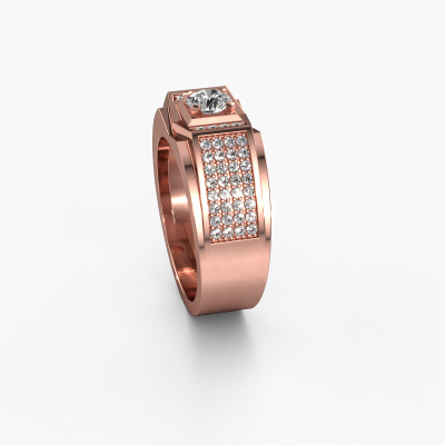 Are you looking for a modern rose gold men's ring that is slightly different? Then our flat rose gold zirconia set Marcel men's ring is the perfect ring for you! This ring, as shown here, is made of rose gold but feel free to customize to your liking. Show them what you are all about with this rose gold cz-stones Marcel men's ring, a ring for ambitious men. Our goldsmiths passionately create your customized men's ring to your liking with the utmost care. The rose gold men's ring, as shown here, can be customized using our online tool. Feel free to ask our jewel designers for assistance if you want changes made which are unavailable in our online tool. We are happy to answer your questions.