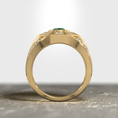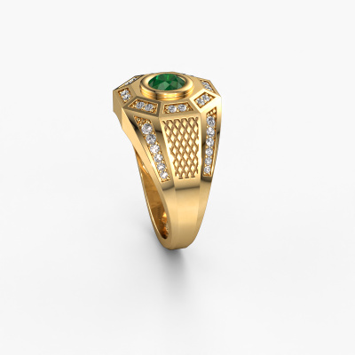 Are you looking for a modern gold men's ring that is slightly different? Then our heavy gold emerald set Enzo men's ring is the perfect ring for you! This ring, as shown here, is made of gold but feel free to customize to your liking. Show them what you are all about with this gold emerald Enzo men's ring, a ring for ambitious men. Customize your own special Enzo men's ring, which will then be created by our goldsmiths with great passion. Do you prefer a different option than is shown here in the gold Enzo men's ring? Then our online tools offers various options. Feel free to ask us for help if you are unable to succeed. We are happy to answer your questions!Our team of talented, passionate designers add new ring designs to our online collection daily. Our objective in doing so, is to be able to offer you a wide variety of jewels. Please feel free to request a quote if you have specific wishes for your ring. We guarantee to make you an offer you can't refuse.After receiving your order, our goldsmiths will start the creative process of making your Enzo ring. We don't keep stock. This is advantageous because these costs will not be passed on to you. Therefore, we can offer jewellery at exceptionally low prices.To make it easier for you, we offer a 30 day return policy. Check our terms and conditions.
