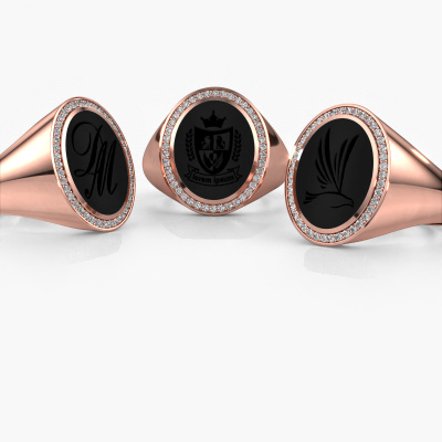 The solid Adam 4 signet ring with oval shape onyx stone top, as shown above, is filled with tradition. Customary, the signet ring was passed down from father to son. Start your own tradition with this solid rose gold signet ring. We are also more than happy to engrave your ring with a monogram or family crest. Please check our database for further inquiries and options. You can find the departments of our education centre at the bottom of this page. Start a new tradition with the exclusive rose gold Adam 4 signet ring. The best part of this luxury signet ring is that you can customize it to your own liking. Your style, your choice, your signet ring. On top of that, your exclusive rose gold signet ring will be made by hand with eco-friendly materials! Please feel free to easily customize the ring, using our online tool. Of course, you can always contact us. We will gladly help you compiling your exclusive signet ring. Is there a design you like, but you would like to customize it with a gemstone we do not offer on our website, then please contact us. We're happy to tell you about the possibilities.Our team of talented, passionate designers add new ring designs to our online collection daily. Our objective in doing so, is to be able to offer you a wide variety of jewels. Please feel free to request a quote if you have specific wishes for your ring. We guarantee to make you an offer you can't refuse.After receiving your order, our goldsmiths will passionately start the creative process of making your ring in our own studio. Because we don't have a big stockpile, these costs will not be passed on to you. Our pricing is proof of that! We offer top quality jewels at lowest price, guaranteed.To make it easier for you, we offer a 30 day return policy. Check our terms and conditions.