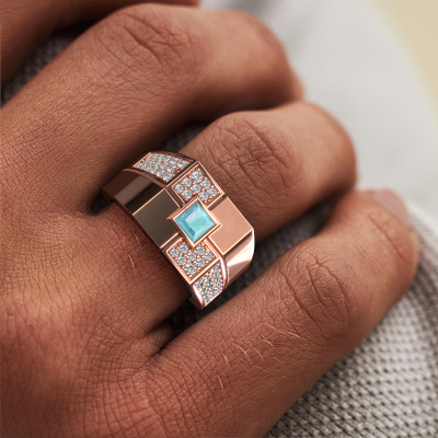 Dress to impress with this rectangular Rogier men's ring, because with the right ring you make a strong personal statement. This Rogier cool men's ring is shown in 14 Carat rose gold. If this doesn't suit your style, feel free to customize the precious metal to your liking. After all, you want a men's ring that matches your style. A ring that truly suits you. One saying: This is who I am!The cool Rogier men's ring, as shown here, can be customized to your liking. Our online tool offers many different options but please feel free to contact us if you want changes made to your Rogier men's ring, which are unavailable in our online tool.Our talented designers add new designs to our online collection daily. Together they create a diverse collection of the finest jewellery. If you prefer to make a ring according your own design, please feel free to request a quote. We will make you an amazing offer, based on quality and price.After receiving your order, our goldsmiths will start the creative process of making your Rogier ring. We don't keep stock. This is advantageous because these costs will not be passed on to you. Therefore, we can offer jewellery at exceptionally low prices.To make it easier for you, we offer a 30 day return policy. Check our terms and conditions.