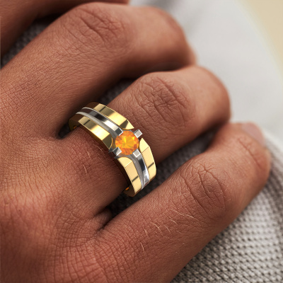 Dress to impress with this 2 Colours Kiro men's ring, because with the right ring you make a strong personal statement. This Kiro special men's ring is shown in 14 Carat gold. If this doesn't suit your style, feel free to customize the precious metal to your liking. After all, you want a men's ring that matches your style. A ring that truly suits you. One saying: This is who I am!As soon as you finished designing your Kiro men's ring with our online tool, our goldsmiths will start their creative process of making your ring. This will be done with passion and care, according ancient crafting. On top of that, our jewels are made of eco-friendly materials. Simply customize online with our online tool, if you want any changes made. If you want specific changes made to your Kiro men's ring, that are unavailable in our online tool, please feel free to contact our expert designers.Our team of talented, passionate designers add new ring designs to our online collection daily. Our objective in doing so, is to be able to offer you a wide variety of jewels. Please feel free to request a quote if you have specific wishes for your ring. We guarantee to make you an offer you can't refuse.Because we design and deliver our own rings, we can offer you a ring at a price you won't find anywhere else. A ring is made to order, which helps prevent excess supplies, so we can make you a great price offer. We understand it feels risky, buying your ring online, but we will gladly assist in the designing process, taking your budget into consideration.To make it easier for you, we offer a 30 day return policy. Check our terms and conditions.