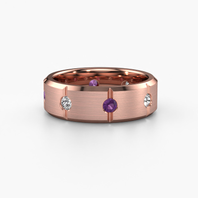 Dress to impress with this flat Irwin men's ring, because with the right ring you make a strong personal statement. This Irwin edgy men's ring is shown in 14 Carat rose gold. If this doesn't suit your style, feel free to customize the precious metal to your liking. After all, you want a men's ring that matches your style. A ring that truly suits you. One saying: This is who I am!How do you like this modern rose gold men's ring? Simply customize this Irwin men's ring, using our online tool. Subsequently, your personal edgy Irwin men's ring will be made by hand by our goldsmiths. Precious metals and gemstones can be customized to your liking. Do you have specific preferences which are unavailable in our online tool? Please feel free to contact us. We will customize your personal modern men's ring to your liking.