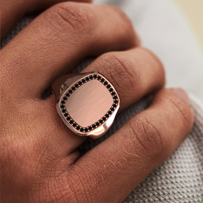 Dress to impress with this flat Floris Cushion 4 men's ring, because with the right ring you make a strong personal statement. This Floris Cushion 4 elegant men's ring is shown in 14 Carat rose gold. If this doesn't suit your style, feel free to customize the precious metal to your liking. After all, you want a men's ring that matches your style. A ring that truly suits you. One saying: This is who I am!How do you like this modern rose gold signet ring? Simply customize this Floris Cushion 4 signet ring, using our online tool. Subsequently, your personal elegant Floris Cushion 4 signet ring will be made by hand by our goldsmiths. Precious metals and gemstones can be customized to your liking. Do you have specific preferences which are unavailable in our online tool? Please feel free to contact us. We will customize your personal modern signet ring to your liking.