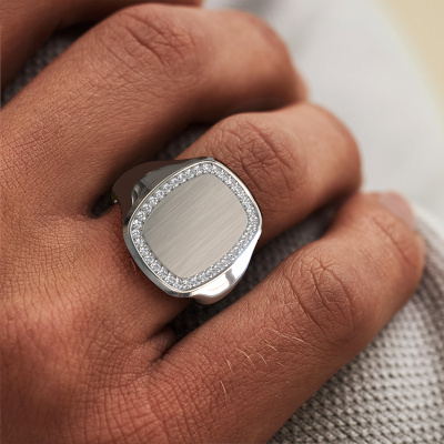 Dress to impress with this flat Floris Cushion 4 men's ring, because with the right ring you make a strong personal statement. This Floris Cushion 4 elegant men's ring is shown in 14 Carat white gold. If this doesn't suit your style, feel free to customize the precious metal to your liking. After all, you want a men's ring that matches your style. A ring that truly suits you. One saying: This is who I am!How do you like this modern white gold signet ring? Simply customize this Floris Cushion 4 signet ring, using our online tool. Subsequently, your personal elegant Floris Cushion 4 signet ring will be made by hand by our goldsmiths. Precious metals and gemstones can be customized to your liking. Do you have specific preferences which are unavailable in our online tool? Please feel free to contact us. We will customize your personal modern signet ring to your liking.