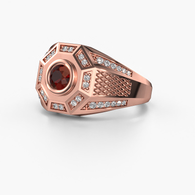 Are you looking for a modern rose gold men's ring that is slightly different? Then our heavy rose gold garnet set Enzo men's ring is the perfect ring for you! This ring, as shown here, is made of rose gold but feel free to customize to your liking. Show them what you are all about with this rose gold garnet Enzo men's ring, a ring for ambitious men. Customize your own special Enzo men's ring, which will then be created by our goldsmiths with great passion. Do you prefer a different option than is shown here in the rose gold Enzo men's ring? Then our online tools offers various options. Feel free to ask us for help if you are unable to succeed. We are happy to answer your questions!Our team of talented, passionate designers add new ring designs to our online collection daily. Our objective in doing so, is to be able to offer you a wide variety of jewels. Please feel free to request a quote if you have specific wishes for your ring. We guarantee to make you an offer you can't refuse.After receiving your order, our goldsmiths will start the creative process of making your Enzo ring. We don't keep stock. This is advantageous because these costs will not be passed on to you. Therefore, we can offer jewellery at exceptionally low prices.To make it easier for you, we offer a 30 day return policy. Check our terms and conditions.