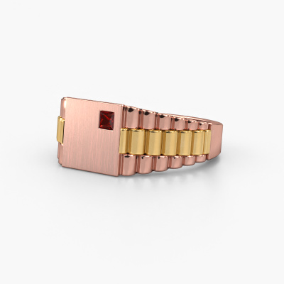 Everyone knows the design of this well-known watch brand. With two colours of rose gold links, this solid 14 Carat rose gold Pelle men's ring, is perfectly suited for trendy, successful men. A man who wants to dress to impress with a striking men's ring with 3 mm garnet. Show them what you are made of!The best part of this royal men's ring is that you can customize it to your own liking. Your style, your choice, your men's ring. On top of that, your luxury rose gold men's ring will be made by hand with eco-friendly materials! Please feel free to easily customize the ring, using our online tool. Of course, you can always contact us. We will gladly help you compiling your luxury men's ring. Is there a design you like, but you would like to customize it with a gemstone we do not offer on our website, then please contact us. We're happy to tell you about the possibilities.Our team of talented, passionate designers add new ring designs to our online collection daily. Our objective in doing so, is to be able to offer you a wide variety of jewels. Please feel free to request a quote if you have specific wishes for your ring. We guarantee to make you an offer you can't refuse.After receiving your order, our goldsmiths will start the creative process of making your Pelle ring. We don't keep stock. This is advantageous because these costs will not be passed on to you. Therefore, we can offer jewellery at exceptionally low prices.To make it easier for you, we offer a 30 day return policy. Check our terms and conditions.