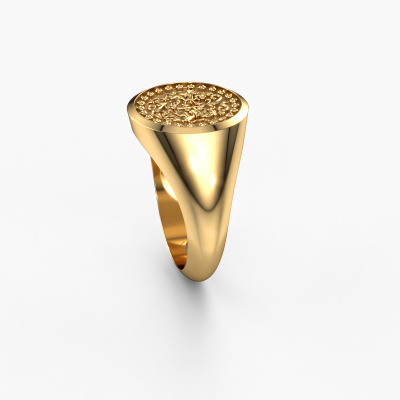 Dress to impress with this round Dex family crest ring, because with the right ring you make a strong personal statement. This Dex family crest ring is shown in 14 Carat gold. If this doesn't suit your style, feel free to customize the precious metal to your liking. After all, you want a crest engraving family crest ring that matches your style. A ring that truly suits you. One saying: This is who I am!The crest engravings Dex signet ring, as shown here, can be customized to your liking. Our online tool offers many different options but please feel free to contact us if you want changes made to your Dex signet ring, which are unavailable in our online tool.New jewellery designs are added to our online collection daily. Our team of passionate designers strive to create extraordinary and diverse designs. Have you seen a ring you like? Please feel free to contact us. Based on a good price/ quality ratio, we will make you an offer you can't refuse!By using our modern techniques, we can design and customize the finest quality jewels with the utmost care for you. Our rings are always priced 30 percent lower than other jewellers. We make rings to order, so we don't have to maintain a large stock. If you have a certain budget, we are more than happy to advice you accordingly.To make it easier for you, we offer a 30 day return policy. Check our terms and conditions.