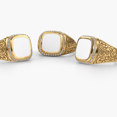 The square Jesse 3 men's ring with square white enamel stone top, as shown above, is filled with tradition. Customary, the men's ring was passed down from father to son. Start your own tradition with this square gold men's ring. We are also more than happy to engrave your ring with a monogram or family crest. Please check our database for further inquiries and options. You can find the departments of our education centre at the bottom of this page. Start a new tradition with the Celtic gold Jesse 3 men's ring. How do you like this Celtic gold signet ring? Simply customize this Jesse 3 signet ring, using our online tool. Subsequently, your personal crests Jesse 3 signet ring will be made by hand by our goldsmiths. Precious metals and gemstones can be customized to your liking. Do you have specific preferences which are unavailable in our online tool? Please feel free to contact us. We will customize your personal Celtic signet ring to your liking.Our talented designers add new designs to our online collection daily. Together they create a diverse collection of the finest jewellery. If you prefer to make a ring according your own design, please feel free to request a quote. We will make you an amazing offer, based on quality and price.By using a combination of the latest modern techniques, combined with ancient crafting, we can make all our rings in our own studio. Each jewel is made to order. This is advantageous because we can offer you a price you won't find anywhere else.To make it easier for you, we offer a 30 day return policy. Check our terms and conditions.