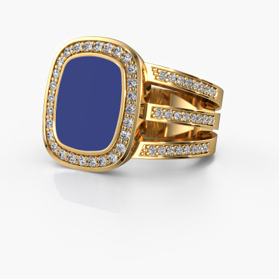 The wide Tijn signet ring with rectangle antique blue enamel stone top, as shown above, is filled with tradition. Customary, the signet ring was passed down from father to son. Start your own tradition with this wide gold signet ring. We are also more than happy to engrave your ring with a monogram or family crest. Please check our database for further inquiries and options. You can find the departments of our education centre at the bottom of this page. Start a new tradition with the exclusive gold Tijn signet ring. The special Tijn signet ring, as shown here, can be customized to your liking. Our online tool offers many different options but please feel free to contact us if you want changes made to your Tijn signet ring, which are unavailable in our online tool.New jewellery designs are added to our online collection daily. Our team of passionate designers strive to create extraordinary and diverse designs. Have you seen a ring you like? Please feel free to contact us. Based on a good price/ quality ratio, we will make you an offer you can't refuse!After receiving your order, our goldsmiths will start the creative process of making your Tijn ring. We don't keep stock. This is advantageous because these costs will not be passed on to you. Therefore, we can offer jewellery at exceptionally low prices.To make it easier for you, we offer a 30 day return policy. Check our terms and conditions.