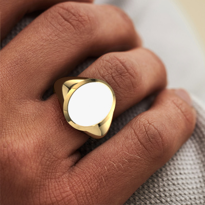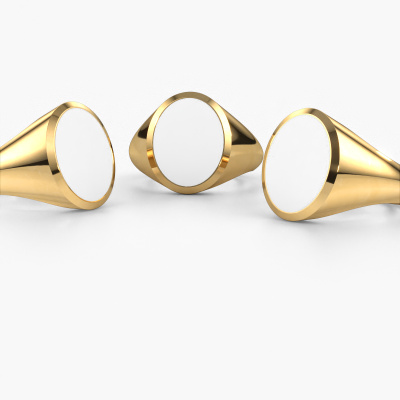The solid Herman 4 signet ring with oval shape white enamel stone top, as shown above, is filled with tradition. Customary, the signet ring was passed down from father to son. Start your own tradition with this solid gold signet ring. We are also more than happy to engrave your ring with a monogram or family crest. Please check our database for further inquiries and options. You can find the departments of our education centre at the bottom of this page. Start a new tradition with the classic gold Herman 4 signet ring. As soon as you finished designing your Herman 4 signet ring with our online tool, our goldsmiths will start their creative process of making your ring. This will be done with passion and care, according ancient crafting. On top of that, our jewels are made of eco-friendly materials. Simply customize online with our online tool, if you want any changes made. If you want specific changes made to your Herman 4 signet ring, that are unavailable in our online tool, please feel free to contact our expert designers.Our team of talented, passionate designers add new ring designs to our online collection daily. Our objective in doing so, is to be able to offer you a wide variety of jewels. Please feel free to request a quote if you have specific wishes for your ring. We guarantee to make you an offer you can't refuse.Are you on a budget? Please feel free to contact us, so we can go discuss your options. We offer our rings at guaranteed best price, because we make them to order. You won't find such a price anywhere else!To make it easier for you, we offer a 30 day return policy. Check our terms and conditions.