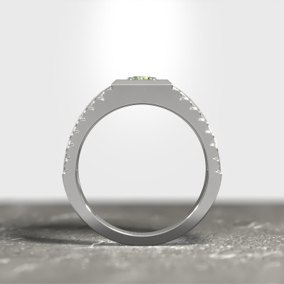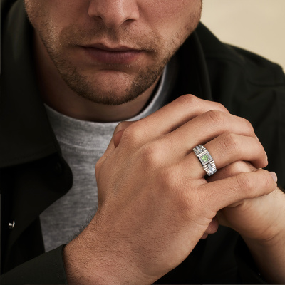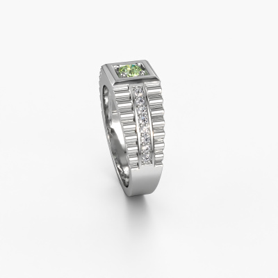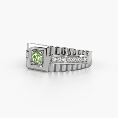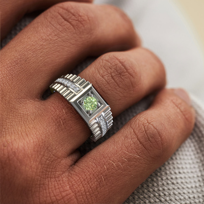 Everyone knows the design of this well-known watch brand. With two colours of platinum links, this wide platinum Maikel men's ring, is perfectly suited for trendy, successful men. A man who wants to dress to impress with a striking men's ring with 4.2 mm green lab grown diamond. Show them what you are made of!