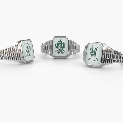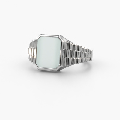 Everyone knows the design of this well-known watch brand. With two colours of white gold links, this rectangular 14 Carat white gold Brent 1 signet ring, is perfectly suited for trendy, successful men. A man who wants to dress to impress with a striking signet ring with 10x8 mm green sardonyx. Show them what you are made of!Customize your own royal Brent 1 signet ring, which will then be created by our goldsmiths with great passion. Do you prefer a different option than is shown here in the white gold Brent 1 signet ring? Then our online tools offers various options. Feel free to ask us for help if you are unable to succeed. We are happy to answer your questions!New jewellery designs are added to our online collection daily. Our team of passionate designers strive to create extraordinary and diverse designs. Have you seen a ring you like? Please feel free to contact us. Based on a good price/ quality ratio, we will make you an offer you can't refuse!By using our modern techniques, we can design and customize the finest quality jewels with the utmost care for you. Our rings are always priced 30 percent lower than other jewellers. We make rings to order, so we don't have to maintain a large stock. If you have a certain budget, we are more than happy to advice you accordingly.To make it easier for you, we offer a 30 day return policy. Check our terms and conditions.