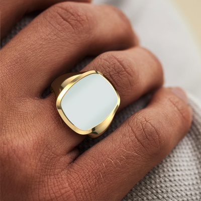 The flat Benjamin 4 signet ring with rectangle antique green sardonyx stone top, as shown above, is filled with tradition. Customary, the signet ring was passed down from father to son. Start your own tradition with this flat gold signet ring. We are also more than happy to engrave your ring with a monogram or family crest. Please check our database for further inquiries and options. You can find the departments of our education centre at the bottom of this page. Start a new tradition with the modern gold Benjamin 4 signet ring. How do you like this modern gold signet ring? Simply customize this Benjamin 4 signet ring, using our online tool. Subsequently, your personal royal Benjamin 4 signet ring will be made by hand by our goldsmiths. Precious metals and gemstones can be customized to your liking. Do you have specific preferences which are unavailable in our online tool? Please feel free to contact us. We will customize your personal modern signet ring to your liking.Our team of talented, passionate designers add new ring designs to our online collection daily. Our objective in doing so, is to be able to offer you a wide variety of jewels. Please feel free to request a quote if you have specific wishes for your ring. We guarantee to make you an offer you can't refuse.After receiving your order, our goldsmiths will passionately start the creative process of making your ring in our own studio. Because we don't have a big stockpile, these costs will not be passed on to you. Our pricing is proof of that! We offer top quality jewels at lowest price, guaranteed.To make it easier for you, we offer a 30 day return policy. Check our terms and conditions.