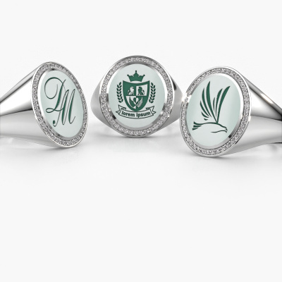 The oval Adam 5 signet ring with oval shape green sardonyx stone top, as shown above, is filled with tradition. Customary, the signet ring was passed down from father to son. Start your own tradition with this oval platinum signet ring. We are also more than happy to engrave your ring with a monogram or family crest. Please check our database for further inquiries and options. You can find the departments of our education centre at the bottom of this page. Start a new tradition with the exclusive platinum Adam 5 signet ring. The diamonds Adam 5 signet ring, as shown here, can be customized to your liking. Our online tool offers many different options but please feel free to contact us if you want changes made to your Adam 5 signet ring, which are unavailable in our online tool.Our talented designers add new designs to our online collection daily. Together they create a diverse collection of the finest jewellery. If you prefer to make a ring according your own design, please feel free to request a quote. We will make you an amazing offer, based on quality and price.After receiving your order, our goldsmiths will start the creative process of making your Adam 5 ring. We don't keep stock. This is advantageous because these costs will not be passed on to you. Therefore, we can offer jewellery at exceptionally low prices.To make it easier for you, we offer a 30 day return policy. Check our terms and conditions.
