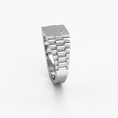 Everyone knows the design of this well-known watch brand. With two colours of platinum links, this solid platinum Pelle men's ring, is perfectly suited for trendy, successful men. A man who wants to dress to impress with a striking men's ring with 0.17 crt lab grown diamond. Show them what you are made of!The best part of this royal men's ring is that you can customize it to your own liking. Your style, your choice, your men's ring. On top of that, your luxury platinum men's ring will be made by hand with eco-friendly materials! Please feel free to easily customize the ring, using our online tool. Of course, you can always contact us. We will gladly help you compiling your luxury men's ring. Is there a design you like, but you would like to customize it with a gemstone we do not offer on our website, then please contact us. We're happy to tell you about the possibilities.Our team of talented, passionate designers add new ring designs to our online collection daily. Our objective in doing so, is to be able to offer you a wide variety of jewels. Please feel free to request a quote if you have specific wishes for your ring. We guarantee to make you an offer you can't refuse.After receiving your order, our goldsmiths will start the creative process of making your Pelle ring. We don't keep stock. This is advantageous because these costs will not be passed on to you. Therefore, we can offer jewellery at exceptionally low prices.To make it easier for you, we offer a 30 day return policy. Check our terms and conditions.