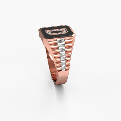 Everyone knows the design of this well-known watch brand. With two colours of rose gold links, this rectangular 14 Carat rose gold Stephan 1 signet ring, is perfectly suited for trendy, successful men. A man who wants to dress to impress with a striking signet ring with 0.068 crt lab grown diamond. Show them what you are made of!The cool Stephan 1 signet ring, as shown here, can be customized to your liking. Our online tool offers many different options but please feel free to contact us if you want changes made to your Stephan 1 signet ring, which are unavailable in our online tool.