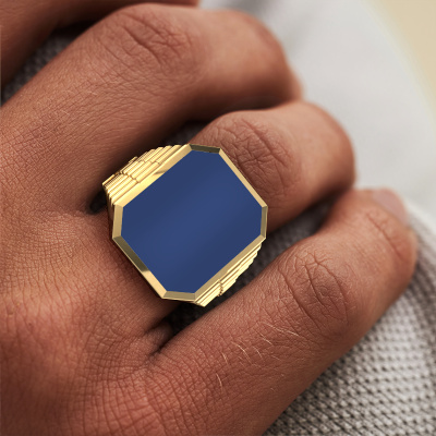Everyone knows the design of this well-known watch brand. With two colours of gold links, this heavy 14 Carat gold Brent 5 signet ring, is perfectly suited for trendy, successful men. A man who wants to dress to impress with a striking signet ring with 18x15 mm lapis. Show them what you are made of!The cool Brent 5 signet ring, as shown here, can be customized to your liking. Our online tool offers many different options but please feel free to contact us if you want changes made to your Brent 5 signet ring, which are unavailable in our online tool.Our team of talented, passionate designers add new ring designs to our online collection daily. Our objective in doing so, is to be able to offer you a wide variety of jewels. Please feel free to request a quote if you have specific wishes for your ring. We guarantee to make you an offer you can't refuse.By using our modern techniques, we can design and customize the finest quality jewels with the utmost care for you. Our rings are always priced 30 percent lower than other jewellers. We make rings to order, so we don't have to maintain a large stock. If you have a certain budget, we are more than happy to advice you accordingly.To make it easier for you, we offer a 30 day return policy. Check our terms and conditions.