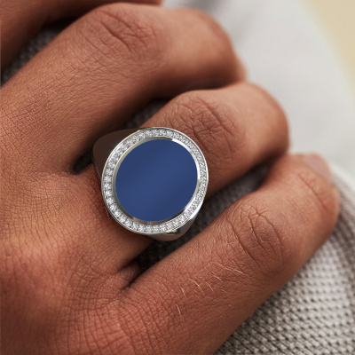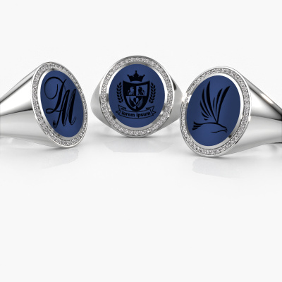 The oval Adam 5 signet ring with oval shape lapis stone top, as shown above, is filled with tradition. Customary, the signet ring was passed down from father to son. Start your own tradition with this oval platinum signet ring. We are also more than happy to engrave your ring with a monogram or family crest. Please check our database for further inquiries and options. You can find the departments of our education centre at the bottom of this page. Start a new tradition with the exclusive platinum Adam 5 signet ring. The diamonds Adam 5 signet ring, as shown here, can be customized to your liking. Our online tool offers many different options but please feel free to contact us if you want changes made to your Adam 5 signet ring, which are unavailable in our online tool.Our talented designers add new designs to our online collection daily. Together they create a diverse collection of the finest jewellery. If you prefer to make a ring according your own design, please feel free to request a quote. We will make you an amazing offer, based on quality and price.After receiving your order, our goldsmiths will start the creative process of making your Adam 5 ring. We don't keep stock. This is advantageous because these costs will not be passed on to you. Therefore, we can offer jewellery at exceptionally low prices.To make it easier for you, we offer a 30 day return policy. Check our terms and conditions.