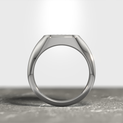 Dress to impress with this flat Floris Cushion 2 men's ring, because with the right ring you make a strong personal statement. This Floris Cushion 2 monogram men's ring is shown in platinum. If this doesn't suit your style, feel free to customize the precious metal to your liking. After all, you want a men's ring that matches your style. A ring that truly suits you. One saying: This is who I am!How do you like this modern platinum signet ring? Simply customize this Floris Cushion 2 signet ring, using our online tool. Subsequently, your personal monograms Floris Cushion 2 signet ring will be made by hand by our goldsmiths. Precious metals and gemstones can be customized to your liking. Do you have specific preferences which are unavailable in our online tool? Please feel free to contact us. We will customize your personal modern signet ring to your liking.