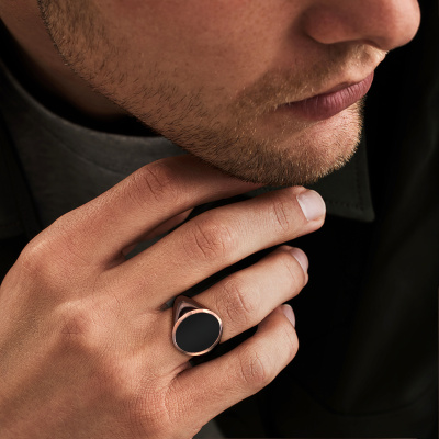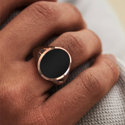 The heavy Herman 6 signet ring with oval shape onyx stone top, as shown above, is filled with tradition. Customary, the signet ring was passed down from father to son. Start your own tradition with this heavy rose gold signet ring. We are also more than happy to engrave your ring with a monogram or family crest. Please check our database for further inquiries and options. You can find the departments of our education centre at the bottom of this page. Start a new tradition with the modern rose gold Herman 6 signet ring. How do you like this modern rose gold signet ring? Simply customize this Herman 6 signet ring, using our online tool. Subsequently, your personal cool Herman 6 signet ring will be made by hand by our goldsmiths. Precious metals and gemstones can be customized to your liking. Do you have specific preferences which are unavailable in our online tool? Please feel free to contact us. We will customize your personal modern signet ring to your liking.Our team of talented, passionate designers add new ring designs to our online collection daily. Our objective in doing so, is to be able to offer you a wide variety of jewels. Please feel free to request a quote if you have specific wishes for your ring. We guarantee to make you an offer you can't refuse.Because we design and deliver our own rings, we can offer you a ring at a price you won't find anywhere else. A ring is made to order, which helps prevent excess supplies, so we can make you a great price offer. We understand it feels risky, buying your ring online, but we will gladly assist in the designing process, taking your budget into consideration.To make it easier for you, we offer a 30 day return policy. Check our terms and conditions.