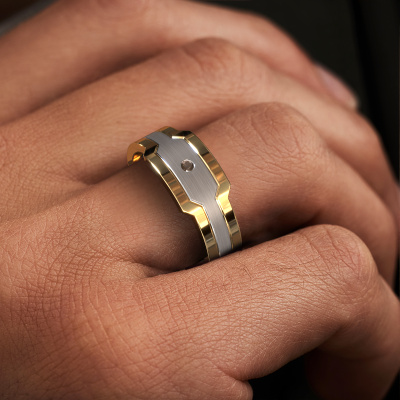 Dress to impress with this 2 Colours Guido men's ring, because with the right ring you make a strong personal statement. This Guido edgy men's ring is shown in 14 Carat white gold. If this doesn't suit your style, feel free to customize the precious metal to your liking. After all, you want a men's ring that matches your style. A ring that truly suits you. One saying: This is who I am!As soon as you finished designing your Guido men's ring with our online tool, our goldsmiths will start their creative process of making your ring. This will be done with passion and care, according ancient crafting. On top of that, our jewels are made of eco-friendly materials. Simply customize online with our online tool, if you want any changes made. If you want specific changes made to your Guido men's ring, that are unavailable in our online tool, please feel free to contact our expert designers.Our team of talented, passionate designers add new ring designs to our online collection daily. Our objective in doing so, is to be able to offer you a wide variety of jewels. Please feel free to request a quote if you have specific wishes for your ring. We guarantee to make you an offer you can't refuse.Because we design and deliver our own rings, we can offer you a ring at a price you won't find anywhere else. A ring is made to order, which helps prevent excess supplies, so we can make you a great price offer. We understand it feels risky, buying your ring online, but we will gladly assist in the designing process, taking your budget into consideration.To make it easier for you, we offer a 30 day return policy. Check our terms and conditions.