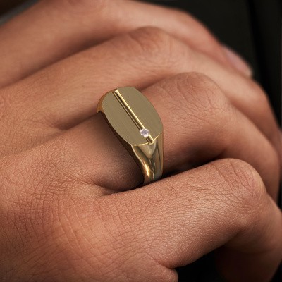 Dress to impress with this flat Stijn men's ring, because with the right ring you make a strong personal statement. This Stijn cool men's ring is shown in 14 Carat gold. If this doesn't suit your style, feel free to customize the precious metal to your liking. After all, you want a men's ring that matches your style. A ring that truly suits you. One saying: This is who I am!