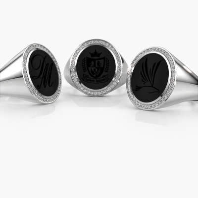 The oval Adam 5 signet ring with oval shape onyx stone top, as shown above, is filled with tradition. Customary, the signet ring was passed down from father to son. Start your own tradition with this oval platinum signet ring. We are also more than happy to engrave your ring with a monogram or family crest. Please check our database for further inquiries and options. You can find the departments of our education centre at the bottom of this page. Start a new tradition with the exclusive platinum Adam 5 signet ring. The diamonds Adam 5 signet ring, as shown here, can be customized to your liking. Our online tool offers many different options but please feel free to contact us if you want changes made to your Adam 5 signet ring, which are unavailable in our online tool.Our talented designers add new designs to our online collection daily. Together they create a diverse collection of the finest jewellery. If you prefer to make a ring according your own design, please feel free to request a quote. We will make you an amazing offer, based on quality and price.After receiving your order, our goldsmiths will start the creative process of making your Adam 5 ring. We don't keep stock. This is advantageous because these costs will not be passed on to you. Therefore, we can offer jewellery at exceptionally low prices.To make it easier for you, we offer a 30 day return policy. Check our terms and conditions.
