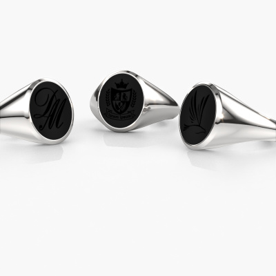 The solid Herman 3 signet ring with oval shape onyx stone top, as shown above, is filled with tradition. Customary, the signet ring was passed down from father to son. Start your own tradition with this solid platinum signet ring. We are also more than happy to engrave your ring with a monogram or family crest. Please check our database for further inquiries and options. You can find the departments of our education centre at the bottom of this page. Start a new tradition with the classic platinum Herman 3 signet ring. As soon as you finished designing your Herman 3 signet ring with our online tool, our goldsmiths will start their creative process of making your ring. This will be done with passion and care, according ancient crafting. On top of that, our jewels are made of eco-friendly materials. Simply customize online with our online tool, if you want any changes made. If you want specific changes made to your Herman 3 signet ring, that are unavailable in our online tool, please feel free to contact our expert designers.Our team of talented, passionate designers add new ring designs to our online collection daily. Our objective in doing so, is to be able to offer you a wide variety of jewels. Please feel free to request a quote if you have specific wishes for your ring. We guarantee to make you an offer you can't refuse.By using our modern techniques, we can design and customize the finest quality jewels with the utmost care for you. Our rings are always priced 30 percent lower than other jewellers. We make rings to order, so we don't have to maintain a large stock. If you have a certain budget, we are more than happy to advice you accordingly.To make it easier for you, we offer a 30 day return policy. Check our terms and conditions.