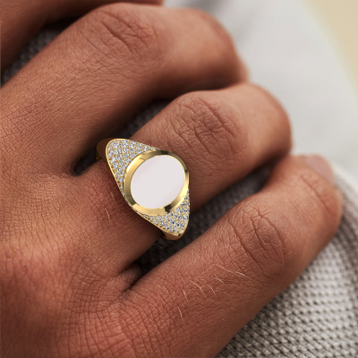 The oval Giovani pinky ring with oval shape red sardonyx stone top, as shown above, is filled with tradition. Customary, the pinky ring was passed down from father to son. Start your own tradition with this oval gold pinky ring. We are also more than happy to engrave your ring with a monogram or family crest. Please check our database for further inquiries and options. You can find the departments of our education centre at the bottom of this page. Start a new tradition with the exclusive gold Giovani pinky ring. Our goldsmiths passionately create your customized signet ring to your liking with the utmost care. The gold signet ring, as shown here, can be customized using our online tool. Feel free to ask our jewel designers for assistance if you want changes made which are unavailable in our online tool. We are happy to answer your questions.New jewellery designs are added to our online collection daily. Our team of passionate designers strive to create extraordinary and diverse designs. Have you seen a ring you like? Please feel free to contact us. Based on a good price/ quality ratio, we will make you an offer you can't refuse!Are you on a budget? Please feel free to contact us, so we can go discuss your options. We offer our rings at guaranteed best price, because we make them to order. You won't find such a price anywhere else!To make it easier for you, we offer a 30 day return policy. Check our terms and conditions.