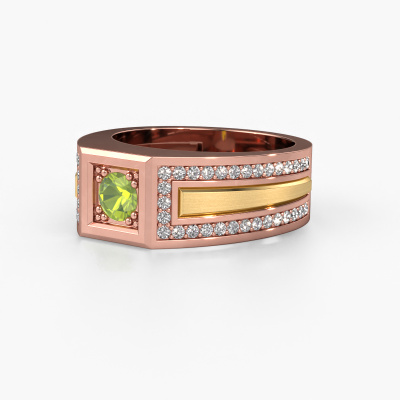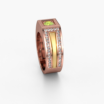 Are you looking for a unique rose gold men's ring that is slightly different? Then our rectangular rose gold peridot set Lando men's ring is the perfect ring for you! This ring, as shown here, is made of rose gold but feel free to customize to your liking. Show them what you are all about with this rose gold peridot Lando men's ring, a ring for ambitious men. How do you like this unique rose gold men's ring? Simply customize this Lando men's ring, using our online tool. Subsequently, your personal royal Lando men's ring will be made by hand by our goldsmiths. Precious metals and gemstones can be customized to your liking. Do you have specific preferences which are unavailable in our online tool? Please feel free to contact us. We will customize your personal unique men's ring to your liking.New jewellery designs are added to our online collection daily. Our team of passionate designers strive to create extraordinary and diverse designs. Have you seen a ring you like? Please feel free to contact us. Based on a good price/ quality ratio, we will make you an offer you can't refuse!Because we design and deliver our own rings, we can offer you a ring at a price you won't find anywhere else. A ring is made to order, which helps prevent excess supplies, so we can make you a great price offer. We understand it feels risky, buying your ring online, but we will gladly assist in the designing process, taking your budget into consideration.To make it easier for you, we offer a 30 day return policy. Check our terms and conditions.