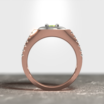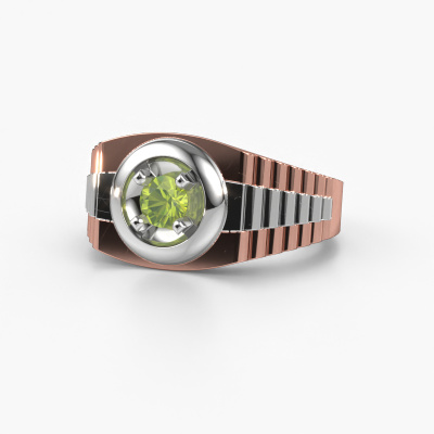 Everyone knows the design of this well-known watch brand. With two colours of rose gold links, this solid 14 Carat rose gold Edward men's ring, is perfectly suited for trendy, successful men. A man who wants to dress to impress with a striking men's ring with 4.7 mm peridot. Show them what you are made of!How do you like this exclusive rose gold men's ring? Simply customize this Edward men's ring, using our online tool. Subsequently, your personal daring Edward men's ring will be made by hand by our goldsmiths. Precious metals and gemstones can be customized to your liking. Do you have specific preferences which are unavailable in our online tool? Please feel free to contact us. We will customize your personal exclusive men's ring to your liking.Our talented designers add new designs to our online collection daily. Together they create a diverse collection of the finest jewellery. If you prefer to make a ring according your own design, please feel free to request a quote. We will make you an amazing offer, based on quality and price.Because we design and deliver our own rings, we can offer you a ring at a price you won't find anywhere else. A ring is made to order, which helps prevent excess supplies, so we can make you a great price offer. We understand it feels risky, buying your ring online, but we will gladly assist in the designing process, taking your budget into consideration.To make it easier for you, we offer a 30 day return policy. Check our terms and conditions.