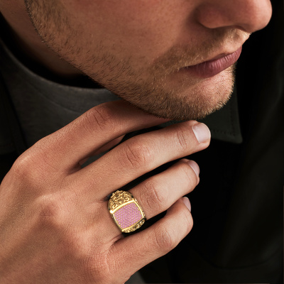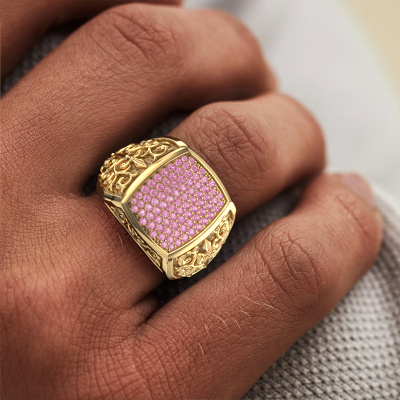 Are you looking for a Celtic gold men's ring that is slightly different? Then our heavy gold pink sapphire set Danny men's ring is the perfect ring for you! This ring, as shown here, is made of gold but feel free to customize to your liking. Show them what you are all about with this gold pink sapphire Danny men's ring, a ring for ambitious men. How do you like this Celtic gold men's ring? Simply customize this Danny men's ring, using our online tool. Subsequently, your personal special Danny men's ring will be made by hand by our goldsmiths. Precious metals and gemstones can be customized to your liking. Do you have specific preferences which are unavailable in our online tool? Please feel free to contact us. We will customize your personal Celtic men's ring to your liking.Our team of talented, passionate designers add new ring designs to our online collection daily. Our objective in doing so, is to be able to offer you a wide variety of jewels. Please feel free to request a quote if you have specific wishes for your ring. We guarantee to make you an offer you can't refuse.By using a combination of the latest modern techniques, combined with ancient crafting, we can make all our rings in our own studio. Each jewel is made to order. This is advantageous because we can offer you a price you won't find anywhere else.To make it easier for you, we offer a 30 day return policy. Check our terms and conditions.