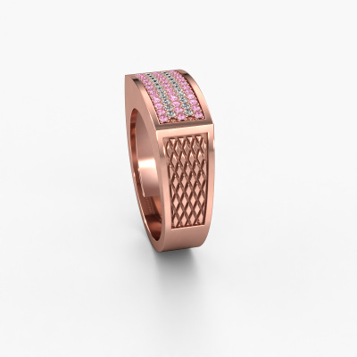 Are you looking for a exclusive rose gold men's ring that is slightly different? Then our rectangular rose gold pink sapphire set Erwin men's ring is the perfect ring for you! This ring, as shown here, is made of rose gold but feel free to customize to your liking. Show them what you are all about with this rose gold pink sapphire Erwin men's ring, a ring for ambitious men. The royal Erwin men's ring, as shown here, can be customized to your liking. Our online tool offers many different options but please feel free to contact us if you want changes made to your Erwin men's ring, which are unavailable in our online tool.Our team of talented, passionate designers add new ring designs to our online collection daily. Our objective in doing so, is to be able to offer you a wide variety of jewels. Please feel free to request a quote if you have specific wishes for your ring. We guarantee to make you an offer you can't refuse.By using a combination of the latest modern techniques, combined with ancient crafting, we can make all our rings in our own studio. Each jewel is made to order. This is advantageous because we can offer you a price you won't find anywhere else.To make it easier for you, we offer a 30 day return policy. Check our terms and conditions.