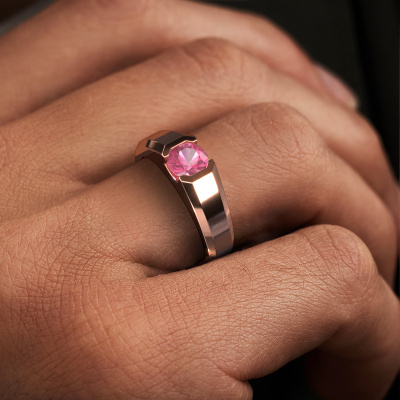 Are you looking for a modern rose gold men's ring that is slightly different? Then our rectangular rose gold pink sapphire set Indigo men's ring is the perfect ring for you! This ring, as shown here, is made of rose gold but feel free to customize to your liking. Show them what you are all about with this rose gold pink sapphire Indigo men's ring, a ring for ambitious men. How do you like this modern rose gold men's ring? Simply customize this Indigo men's ring, using our online tool. Subsequently, your personal best prices Indigo men's ring will be made by hand by our goldsmiths. Precious metals and gemstones can be customized to your liking. Do you have specific preferences which are unavailable in our online tool? Please feel free to contact us. We will customize your personal modern men's ring to your liking.Our team of talented, passionate designers add new ring designs to our online collection daily. Our objective in doing so, is to be able to offer you a wide variety of jewels. Please feel free to request a quote if you have specific wishes for your ring. We guarantee to make you an offer you can't refuse.By using a combination of the latest modern techniques, combined with ancient crafting, we can make all our rings in our own studio. Each jewel is made to order. This is advantageous because we can offer you a price you won't find anywhere else.To make it easier for you, we offer a 30 day return policy. Check our terms and conditions.