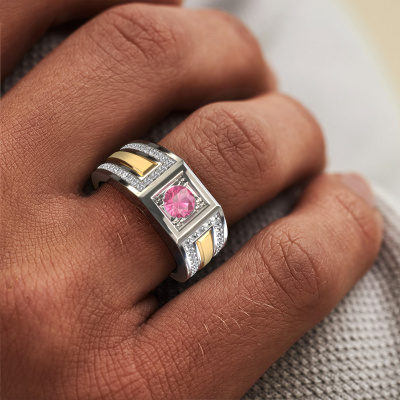 Are you looking for a unique white gold men's ring that is slightly different? Then our rectangular white gold pink sapphire set Lando men's ring is the perfect ring for you! This ring, as shown here, is made of white gold but feel free to customize to your liking. Show them what you are all about with this white gold pink sapphire Lando men's ring, a ring for ambitious men. How do you like this unique white gold men's ring? Simply customize this Lando men's ring, using our online tool. Subsequently, your personal royal Lando men's ring will be made by hand by our goldsmiths. Precious metals and gemstones can be customized to your liking. Do you have specific preferences which are unavailable in our online tool? Please feel free to contact us. We will customize your personal unique men's ring to your liking.New jewellery designs are added to our online collection daily. Our team of passionate designers strive to create extraordinary and diverse designs. Have you seen a ring you like? Please feel free to contact us. Based on a good price/ quality ratio, we will make you an offer you can't refuse!Because we design and deliver our own rings, we can offer you a ring at a price you won't find anywhere else. A ring is made to order, which helps prevent excess supplies, so we can make you a great price offer. We understand it feels risky, buying your ring online, but we will gladly assist in the designing process, taking your budget into consideration.To make it easier for you, we offer a 30 day return policy. Check our terms and conditions.