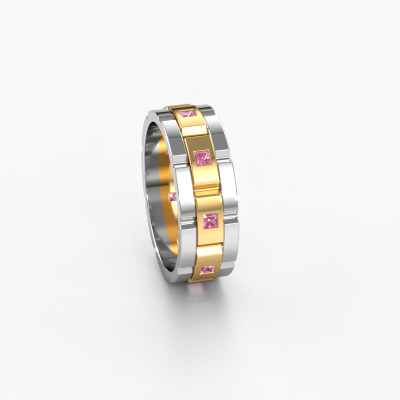 Everyone knows the design of this well-known watch brand. With two colours of gold links, this straight 14 Carat gold Ricardo 2 men's ring, is perfectly suited for trendy, successful men. A man who wants to dress to impress with a striking men's ring with 2 mm pink sapphire. Show them what you are made of!The best part of this best prices men's ring is that you can customize it to your own liking. Your style, your choice, your men's ring. On top of that, your luxury gold men's ring will be made by hand with eco-friendly materials! Please feel free to easily customize the ring, using our online tool. Of course, you can always contact us. We will gladly help you compiling your luxury men's ring. Is there a design you like, but you would like to customize it with a gemstone we do not offer on our website, then please contact us. We're happy to tell you about the possibilities.Our team of talented, passionate designers add new ring designs to our online collection daily. Our objective in doing so, is to be able to offer you a wide variety of jewels. Please feel free to request a quote if you have specific wishes for your ring. We guarantee to make you an offer you can't refuse.After receiving your order, our goldsmiths will start the creative process of making your Ricardo 2 ring. We don't keep stock. This is advantageous because these costs will not be passed on to you. Therefore, we can offer jewellery at exceptionally low prices.To make it easier for you, we offer a 30 day return policy. Check our terms and conditions.