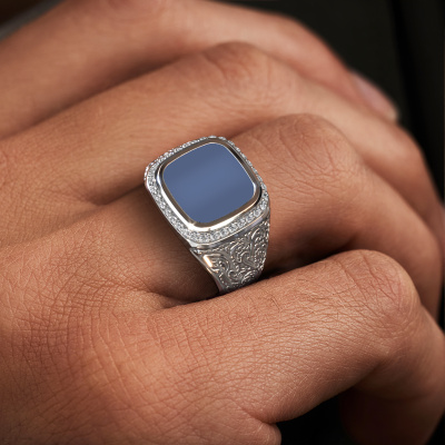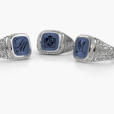 The square Jesse 3 men's ring with square blue sardonyx stone top, as shown above, is filled with tradition. Customary, the men's ring was passed down from father to son. Start your own tradition with this square platinum men's ring. We are also more than happy to engrave your ring with a monogram or family crest. Please check our database for further inquiries and options. You can find the departments of our education centre at the bottom of this page. Start a new tradition with the Celtic platinum Jesse 3 men's ring. How do you like this Celtic platinum signet ring? Simply customize this Jesse 3 signet ring, using our online tool. Subsequently, your personal crests Jesse 3 signet ring will be made by hand by our goldsmiths. Precious metals and gemstones can be customized to your liking. Do you have specific preferences which are unavailable in our online tool? Please feel free to contact us. We will customize your personal Celtic signet ring to your liking.Our talented designers add new designs to our online collection daily. Together they create a diverse collection of the finest jewellery. If you prefer to make a ring according your own design, please feel free to request a quote. We will make you an amazing offer, based on quality and price.By using a combination of the latest modern techniques, combined with ancient crafting, we can make all our rings in our own studio. Each jewel is made to order. This is advantageous because we can offer you a price you won't find anywhere else.To make it easier for you, we offer a 30 day return policy. Check our terms and conditions.