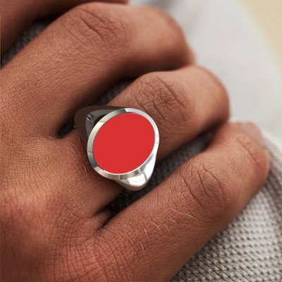 The solid Herman 4 signet ring with oval shape red enamel stone top, as shown above, is filled with tradition. Customary, the signet ring was passed down from father to son. Start your own tradition with this solid platinum signet ring. We are also more than happy to engrave your ring with a monogram or family crest. Please check our database for further inquiries and options. You can find the departments of our education centre at the bottom of this page. Start a new tradition with the classic platinum Herman 4 signet ring. As soon as you finished designing your Herman 4 signet ring with our online tool, our goldsmiths will start their creative process of making your ring. This will be done with passion and care, according ancient crafting. On top of that, our jewels are made of eco-friendly materials. Simply customize online with our online tool, if you want any changes made. If you want specific changes made to your Herman 4 signet ring, that are unavailable in our online tool, please feel free to contact our expert designers.Our team of talented, passionate designers add new ring designs to our online collection daily. Our objective in doing so, is to be able to offer you a wide variety of jewels. Please feel free to request a quote if you have specific wishes for your ring. We guarantee to make you an offer you can't refuse.Are you on a budget? Please feel free to contact us, so we can go discuss your options. We offer our rings at guaranteed best price, because we make them to order. You won't find such a price anywhere else!To make it easier for you, we offer a 30 day return policy. Check our terms and conditions.