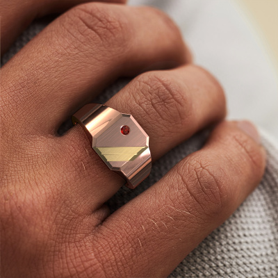 Dress to impress with this rectangular Patrick 1 signet ring, because with the right ring you make a strong personal statement. This Patrick 1 best price signet ring is shown in 14 Carat rose gold. If this doesn't suit your style, feel free to customize the precious metal to your liking. After all, you want a signet ring that matches your style. A ring that truly suits you. One saying: This is who I am!The best part of this best prices signet ring is that you can customize it to your own liking. Your style, your choice, your signet ring. On top of that, your modern rose gold signet ring will be made by hand with eco-friendly materials! Please feel free to easily customize the ring, using our online tool. Of course, you can always contact us. We will gladly help you compiling your modern signet ring. Is there a design you like, but you would like to customize it with a gemstone we do not offer on our website, then please contact us. We're happy to tell you about the possibilities.Our team of talented, passionate designers add new ring designs to our online collection daily. Our objective in doing so, is to be able to offer you a wide variety of jewels. Please feel free to request a quote if you have specific wishes for your ring. We guarantee to make you an offer you can't refuse.By using our modern techniques, we can design and customize the finest quality jewels with the utmost care for you. Our rings are always priced 30 percent lower than other jewellers. We make rings to order, so we don't have to maintain a large stock. If you have a certain budget, we are more than happy to advice you accordingly.To make it easier for you, we offer a 30 day return policy. Check our terms and conditions.