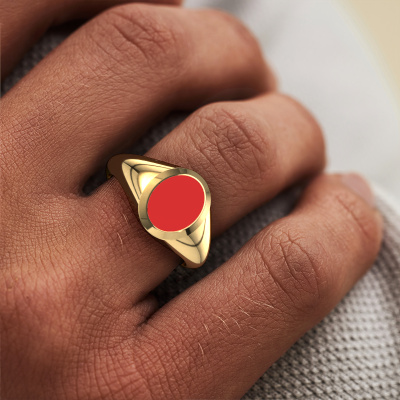 The solid Herman 1 pinky ring with oval shape red enamel stone top, as shown above, is filled with tradition. Customary, the pinky ring was passed down from father to son. Start your own tradition with this solid gold pinky ring. We are also more than happy to engrave your ring with a monogram or family crest. Please check our database for further inquiries and options. You can find the departments of our education centre at the bottom of this page. Start a new tradition with the traditional gold Herman 1 pinky ring. As soon as you finished designing your Herman 1 signet ring with our online tool, our goldsmiths will start their creative process of making your ring. This will be done with passion and care, according ancient crafting. On top of that, our jewels are made of eco-friendly materials. Simply customize online with our online tool, if you want any changes made. If you want specific changes made to your Herman 1 signet ring, that are unavailable in our online tool, please feel free to contact our expert designers.