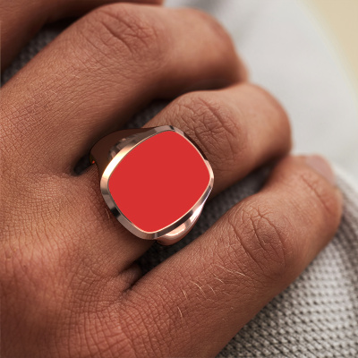 The flat Benjamin 4 signet ring with rectangle antique red enamel stone top, as shown above, is filled with tradition. Customary, the signet ring was passed down from father to son. Start your own tradition with this flat rose gold signet ring. We are also more than happy to engrave your ring with a monogram or family crest. Please check our database for further inquiries and options. You can find the departments of our education centre at the bottom of this page. Start a new tradition with the modern rose gold Benjamin 4 signet ring. How do you like this modern rose gold signet ring? Simply customize this Benjamin 4 signet ring, using our online tool. Subsequently, your personal royal Benjamin 4 signet ring will be made by hand by our goldsmiths. Precious metals and gemstones can be customized to your liking. Do you have specific preferences which are unavailable in our online tool? Please feel free to contact us. We will customize your personal modern signet ring to your liking.Our team of talented, passionate designers add new ring designs to our online collection daily. Our objective in doing so, is to be able to offer you a wide variety of jewels. Please feel free to request a quote if you have specific wishes for your ring. We guarantee to make you an offer you can't refuse.After receiving your order, our goldsmiths will passionately start the creative process of making your ring in our own studio. Because we don't have a big stockpile, these costs will not be passed on to you. Our pricing is proof of that! We offer top quality jewels at lowest price, guaranteed.To make it easier for you, we offer a 30 day return policy. Check our terms and conditions.