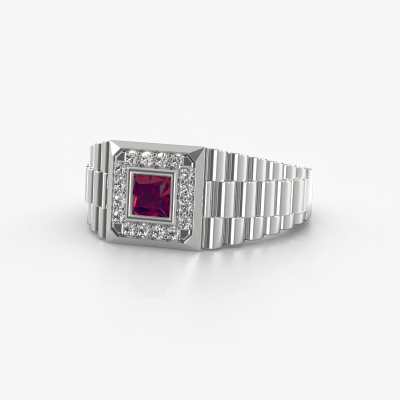 Everyone knows the design of this well-known watch brand. With two colours of platinum links, this solid platinum Zilan men's ring, is perfectly suited for trendy, successful men. A man who wants to dress to impress with a striking men's ring with 4 mm rhodolite. Show them what you are made of!Customize your own special Zilan men's ring, which will then be created by our goldsmiths with great passion. Do you prefer a different option than is shown here in the platinum Zilan men's ring? Then our online tools offers various options. Feel free to ask us for help if you are unable to succeed. We are happy to answer your questions!Our team of talented, passionate designers add new ring designs to our online collection daily. Our objective in doing so, is to be able to offer you a wide variety of jewels. Please feel free to request a quote if you have specific wishes for your ring. We guarantee to make you an offer you can't refuse.After receiving your order, our goldsmiths will start the creative process of making your Zilan ring. We don't keep stock. This is advantageous because these costs will not be passed on to you. Therefore, we can offer jewellery at exceptionally low prices.To make it easier for you, we offer a 30 day return policy. Check our terms and conditions.